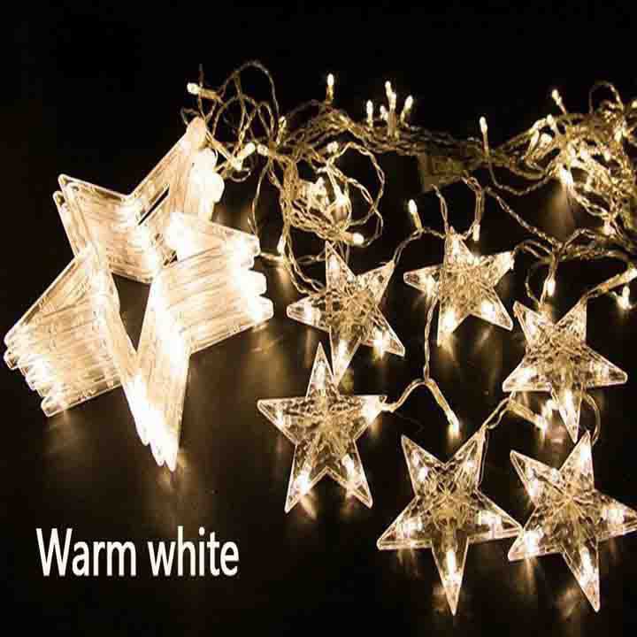 ĐÈN NHÁY THẢ MÀNH DẠNG HÌNH NGÔI SAO + Đèn rèm được mắc sẵn như hình, chỉ việc giăng lên như giăng rèm cửa. + Đèn có nhìu chế độ sáng, chớp nháy khác nhau, có thể chỉnh sáng đứng yên mãi mãi. + Đèn nháy mành dạng sao sau khi giăng ra như hình: Bề ngang 5M, gồm 12 sợi buông xuống so le xen kẽ, mỗi sợi dài 0,65m và 1m, tổng cộng 6 ngôi sao nhỏ, 6 ngôi sao lớn, tổng 126 Led + Đèn nháy dạng dây dài 5m, gồm 10 sợi mành, mỗi sợi dài 2m. + Mỗi đầu đều có chỗ cắm nối tiếp nhiều bộ lại với nhau mà không cần nối điện. + Trọng lượng SP: 500 gr + Kích thước đóng gói: 20x20x20cm + Điện áp: 220V