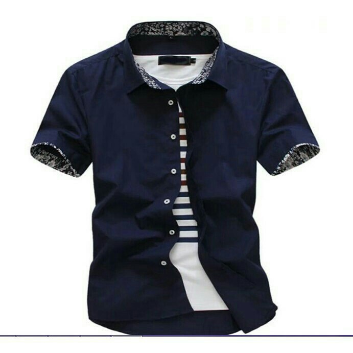 [Siêu rẻ] Sơ mi nam ngắn tay họa tiết xanh đen dáng Hàn QuốcGiá LAVITA