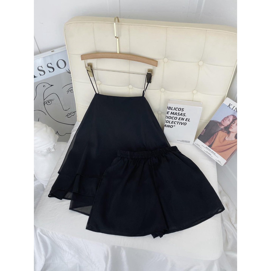 Giới thiệu [SIÊU SALE - HÀNG VNXK] Set Áo Hai Dây Bèo Tầng + Quần Short Chất Tơ Ánh Kim Nữ Tính Nhiều Màu