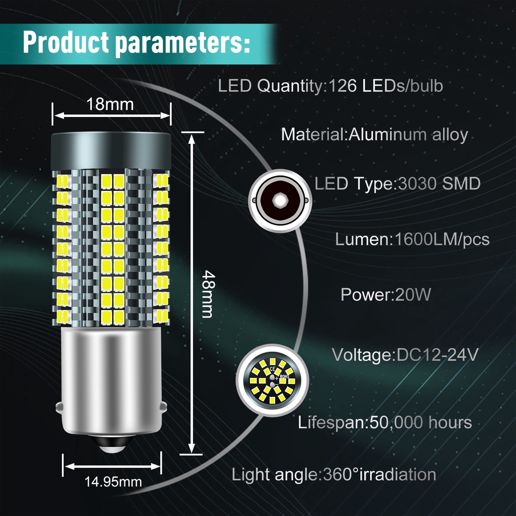【💎 Thông tin chi tiết:💎】 💥 Loại ổ cắm: 1156 (180°),1157,7440,7443 💥 Chip LED: 3030 💥 Màu ánh sáng: Trắng Đỏ Vàng 💥 Điện áp: 12-24V 💥 Tuổi thọ: Khoảng 50000 giờ 💥 Vật chất: Vỏ kim loại nhôm, Ống kính thủy tinh, chip LED 💥 Tiêu chuẩn và chứng nhận: Tuân thủ CE / ROHS