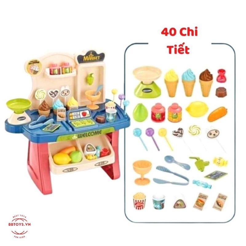 Đồ chơi siêu thị mini cao cấp kèm xe đẩy bán hàng 40 chi tiết có âm thanh, tính năng quẹt thẻ cho bé (BBTOYS: 82)