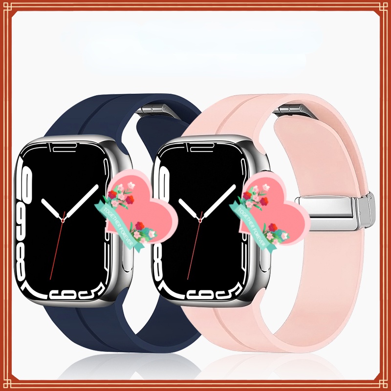 Silicone Dây Đeo Cao Su Silicon Khóa Nam Châm Cho iwatch series 49mm 45mm 44mm 42mm 41mm 40mm 38mm ultra 8 7 se 6 5 4 3 2 t500 Pro d20