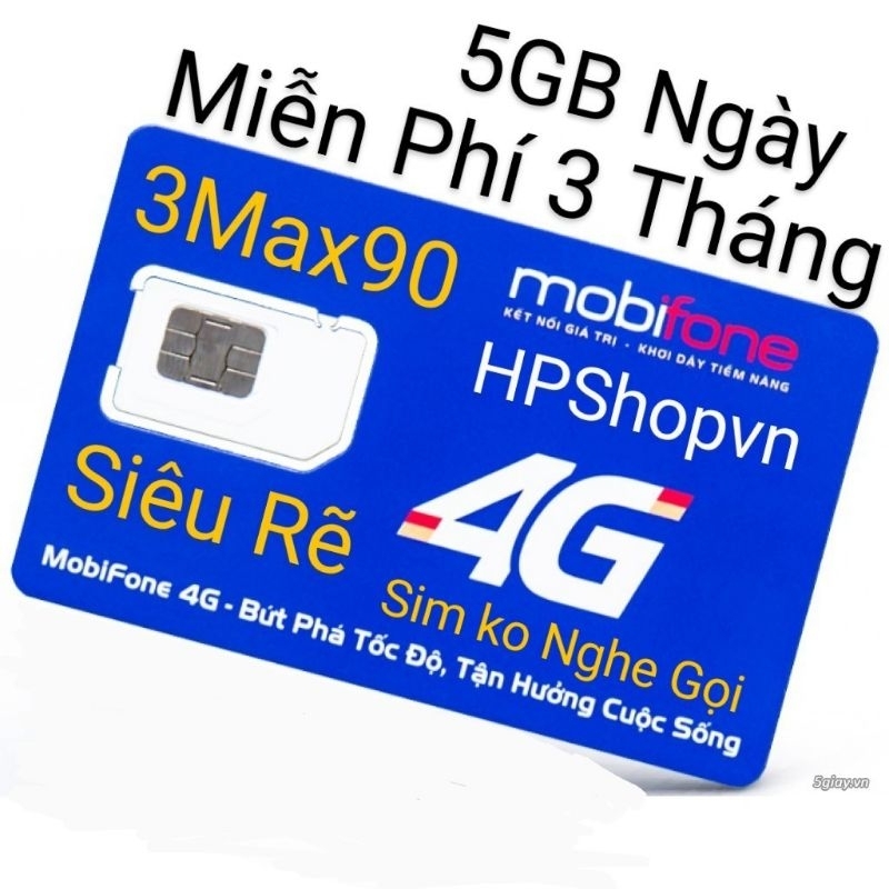 HPShopvn *Sim 3Max90 Mobifone là sim siêu khuyến mãi miễn phí 3 tháng không cần nạp thêm tiền có 5Gb/ngày (hết 5Gb hạ băng thông 5Mbps). *Sim phù hợp tất cả các dòng điện thoại, ipab, máy tính bảng, phát wifi.... *Sim hỗ trợ mạng 2G, 3G, H+, 4G, LTE.... sim cắt sẵn 3 trong 1. *Sim không nghe gọi được. *Phí duy trì cho 90 ngày tiếp theo là 270K. #Lưu Ý: +Sim có thể mất vài ngày do quá trình vận chuyển và lưu kho, mong quý khách thông cảm. +Hết 5Gb sẽ hạ băng thông 5Mbps sử tiếp ko giới hạn, qua ngày mới sẽ + 5Gb mới (data không cộng dồn). Lưu ý từ 24/7/2023 hết 5GB sẽ dừng truy cập. *Kính chúc quý khách bình an vui vẽ, cảm ơn quý khách đã tin tưởng và ủng hộ. #simdata #sim4g #sim5g #simc90n #sim3max90 #simmobi #simgiare #12mdt50 #12max90