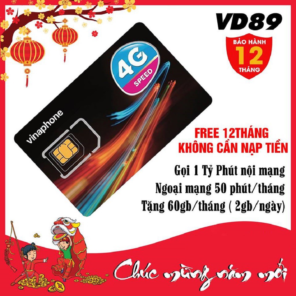 Giới thiệu Sim 4G Vina trọn gói 1 năm, VD8912T, 2Gb ngày, miễn phí nội mạng dưới 20p và 50p ngoại mạng, không nạp tiền hàng tháng