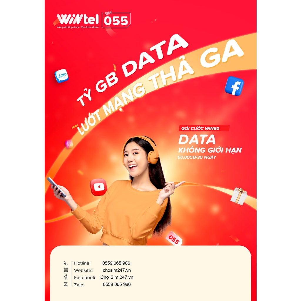 SIM vật lý WINTEL WIN60 - Data tốc độ cao không giới hạn, Gói Cước 60K/30 Ngày