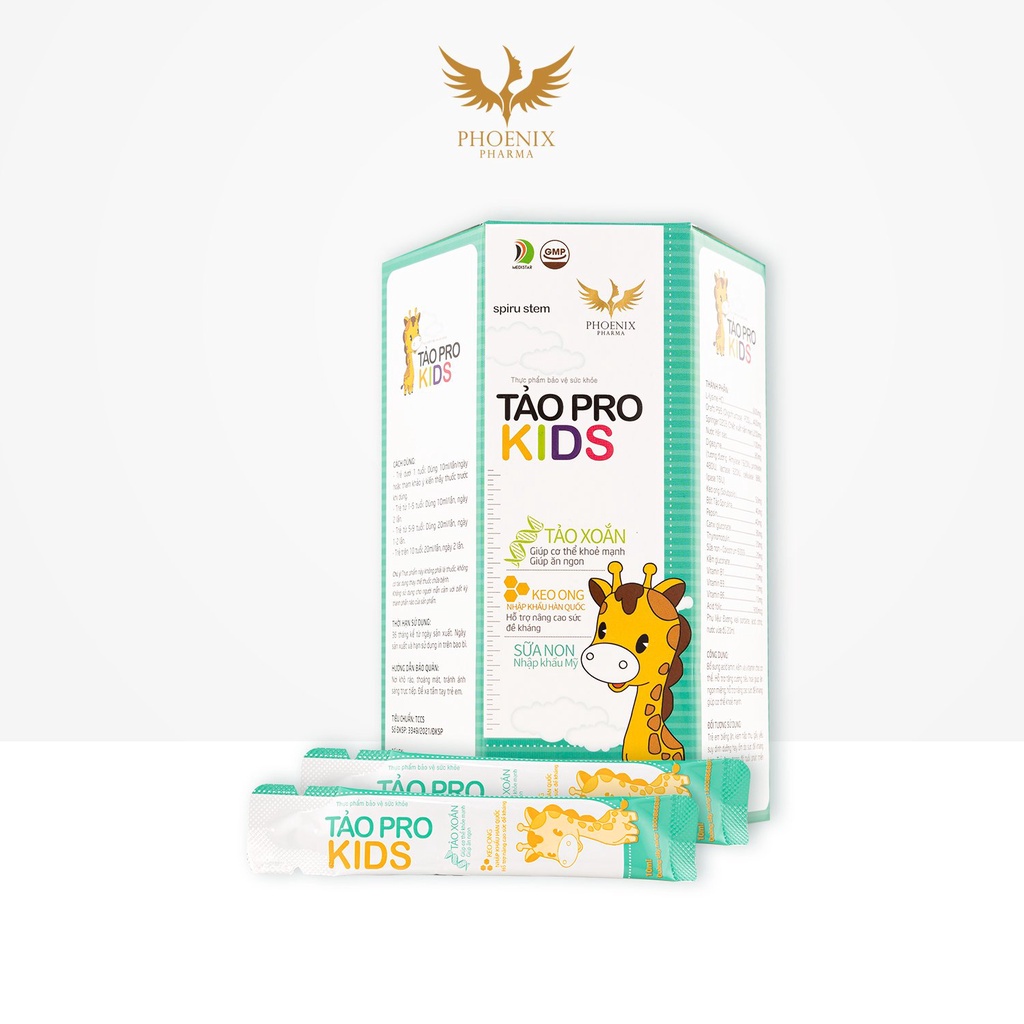 Thông Tin Sản Phẩm Siro ăn ngon cho bé Tảo Pro Kids Phoenix Pharma, giúp bé ăn ngon ngủ ngon tăng sức đề kháng - Thương hiệu: Phoenix Pharma - Xuất xứ: Việt Nam - Công dụng: tăng sức đề kháng, ăn ngon ngủ ngon cho bé, tiêu hóa tốt cho bé, tăng cường miễn dịch - Quy cách đóng gói: Hộp 30 gói/300ml ----------------------------- Siro tăng sức đề kháng Tảo Pro Kids Phoenix Pharma tiêu hóa tốt, ăn ngon ngủ ngon cho bé được đánh giá là một sản phẩm hiệu quả giúp nâng cao hệ miễn dịch của trẻ với, kích thích hệ tiêu hoá, giúp trẻ mau khỏi ốm, nhanh bình phục và khỏe mạnh.