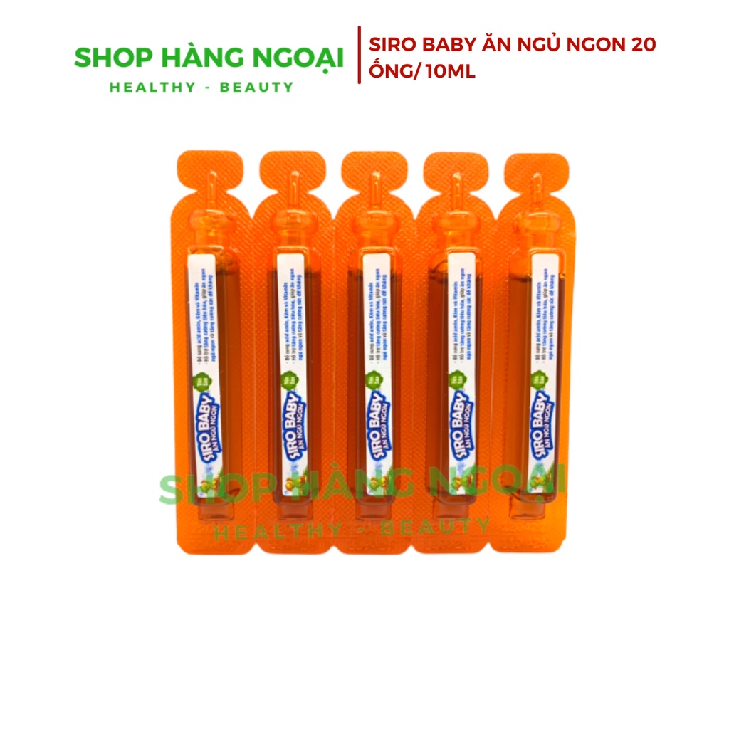 Công dụng Siro Baby ăn ngủ ngon Yến Sào - Hộp 20 ống x 10ml: - Bổ sung Acid amin, kẽm và vitamin giúp bồi bổ sức khoẻ - Hỗ trợ tăng cường tiêu hoá, giúp ăn ngon ngủ ngon và tăng cường sức đề kháng Đối tượng sử dụng: -Trẻ biếng ăn, ăn không ngon miệng, hấp thu kém, ngủ kém. - Trẻ có sức đề kháng kém, gầy yếu, suy dinh dưỡng, mới ốm dậy cần bồi bổ sức khoẻ.