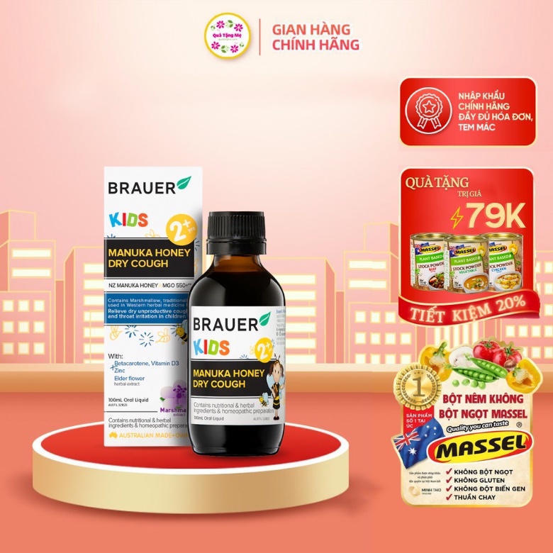 Thông tin sản phẩm: - Tên sản phẩm: Siro ho Brauer Kids Manuka Honey Dry Cough - Thương hiệu: Brauer - Dung tích: 100ml - Xuất xứ: Úc - Ngày sản xuất: In trên bao bì - Hạn sử dụng: Mở nắp sử dụng trong 3 tháng - Đối tượng sử dụng: Trẻ từ 2 tuổi trở lên - Bảo quản sản phẩm nơi khô ráo