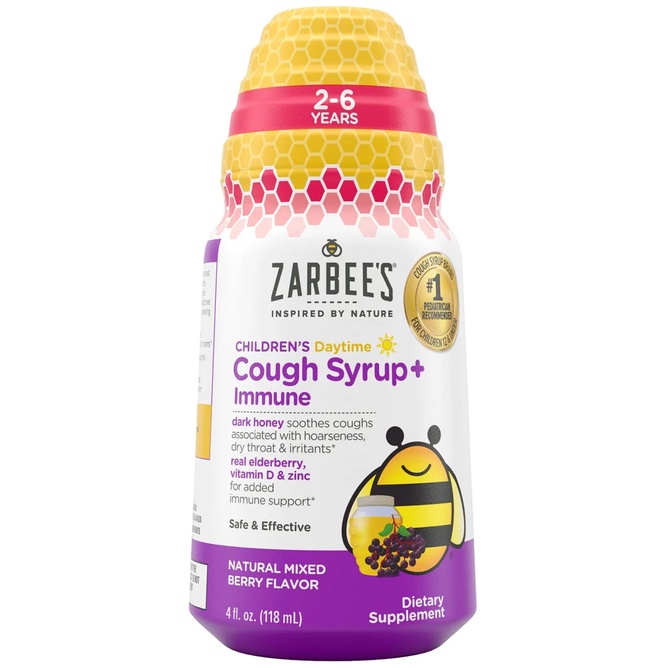 ZARBEE'S BABY COUGH SYRUP VỚI MẬT ONG: Được pha chế với sự pha trộn đặc biệt của mật ong đen để làm dịu cơn ho của con bạn liên quan đến khản giọng, khô họng và kích ứng*.