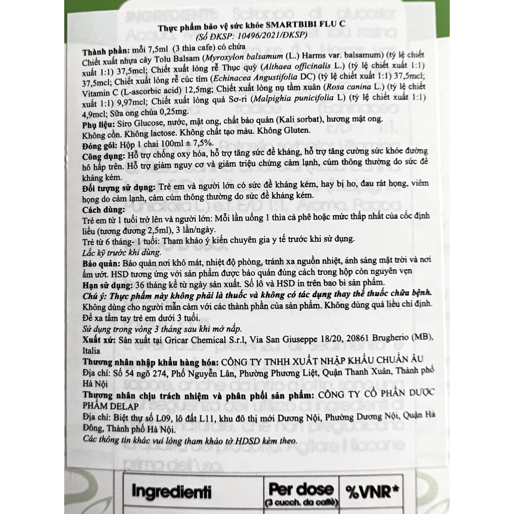 Siro Tăng Đề Kháng Smartbibi Flu C Giảm Cơn Ho Do Cảm Cúm Giảm Đau Họng Hắt Hơi Cho Trẻ