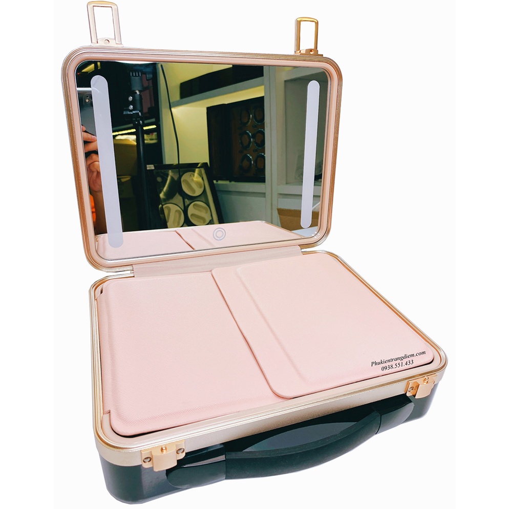 - Cốp trang điểm là một chiếc bàn trang điểm mini di động với phần ngăn dưới đựng mỹ phẩm và phần gương led phía trên.