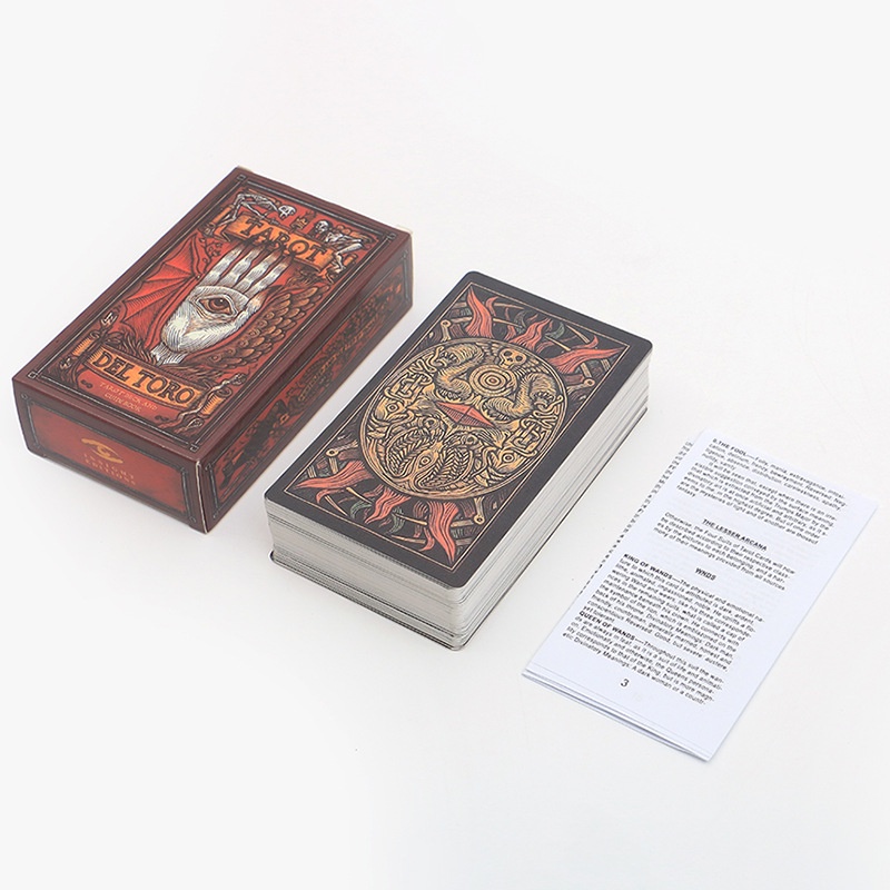 Tarot del Toro sẽ đưa bạn bước vào hành trình thức tỉnh tâm linh, kết nối nội tại trong bạn, đồng thời nếu bạn là một fan hâm mộ những bộ phim với nội dung, kịch bản xuất chúng của vị đạo diễn này thì đây sẽ là cơ hội để bạn sở hữu một tuyệt tác nghệ thuật thông qua Tarot. Bộ bài dựa theo chuẩn Marseille, được đặt trong hộp cứng cáp chất lượng, đồng thời bạn sẽ được cung cấp quyển sách giải nghĩa đơn giản.