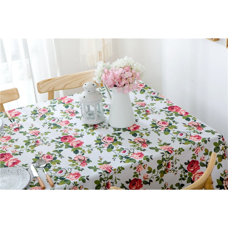 Nhà Cửa & Đời Sống > Trang trí nhà cửa > Tấm phủ > [Size lớn] Khăn trải bàn vải canvas nền trắng dày cao cấp có viền mép hoạ tiết hoa dây đỏ phong cách vintage [[T033]