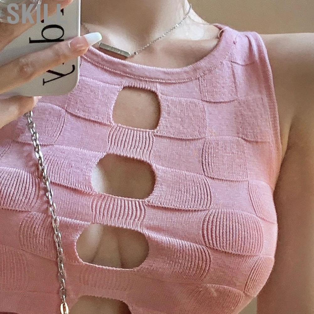 Giới thiệu Skill Hollow Front Knitted Vest Fitted Ribbed Pure Color Out Elastic for Outdoor Girl