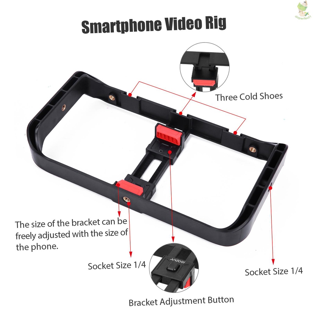 Máy Ảnh & Máy Quay Phim > Phụ kiện máy ảnh > Dụng cụ vệ sinh máy ảnh > Smartphone Video Rig Kit Including Smartphone Cage with 3 Cold Shoe Mounts + Mini LED Video Lights + Microphone with Sho Came-6.5