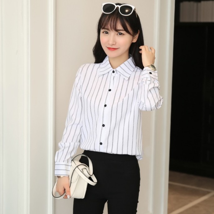 Giới thiệu Sơ mi nữ dài tay kẻ sọc, Áo sơ mi phong cách công sở sm35