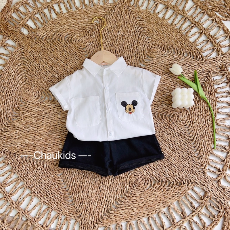 ❌ áo sơ mi thô mềm túi ngực thêu hình mickey cute nhé Quần thô đũi mềm lên phom chuẩn đẹp luôn ạ
