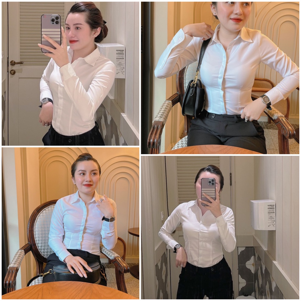 Giới thiệu Sơ Mi trắng giấu nút tay dài LINH CHI vải lụa cao cấp loại 1, vải không nhăn mềm mịn mát form đẹp tôn dáng sang trọng