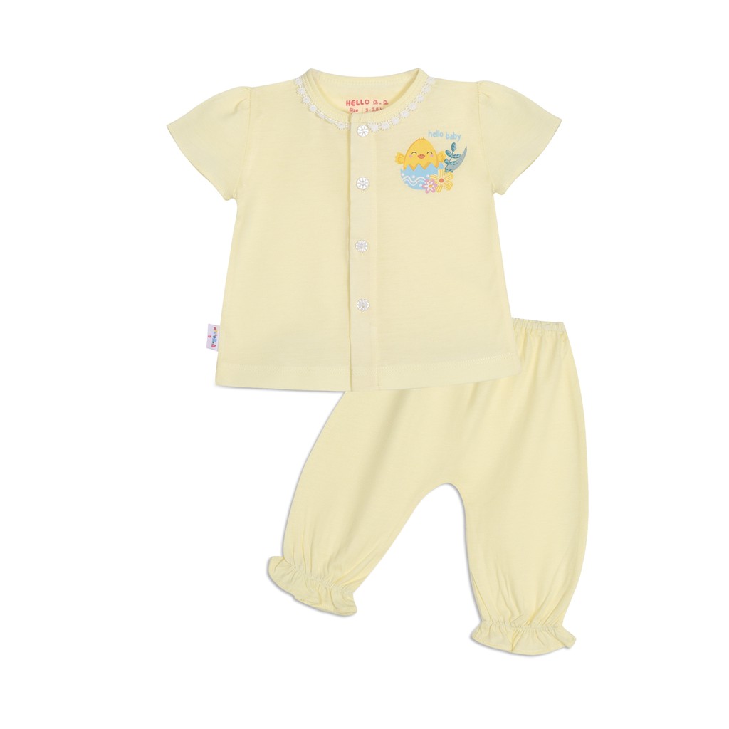 Giới thiệu Bộ đồ sơ sinh cài giữa viền ren bé gái tay ngắn 1316- HELLO B&B