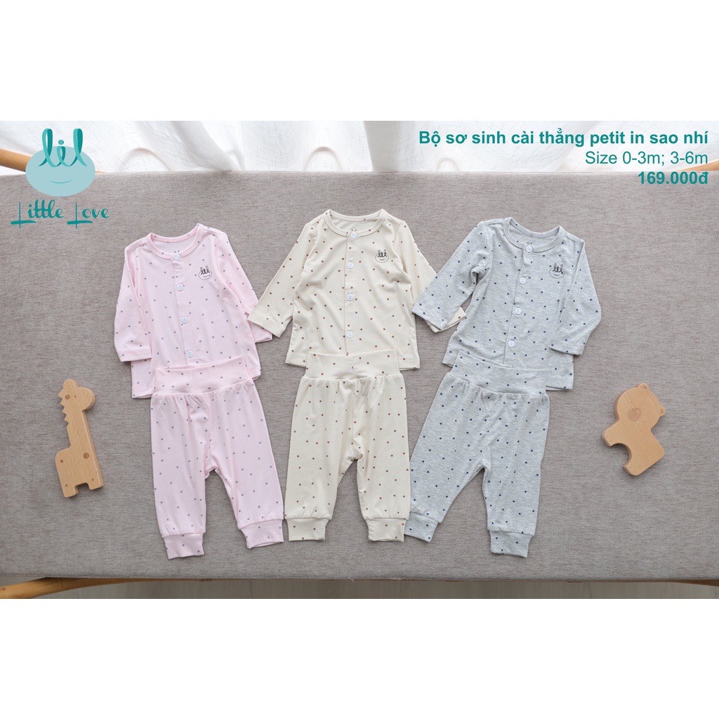 Giới thiệu Bộ sơ sinh cài thẳng cạp cao giữ ấm bụng vải pettit siêu mềm mát Little Love cho bé (sale)