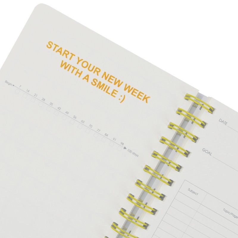 - Sổ Planner được thiết kế để lên và thực hiện kế hoạch bản thân hoàn hảo nhất cho kế hoạch 100 ngày; - Kết cấu lò xo kép ánh ngọc với bìa được thiết kế hiện đại, bồi dày (1200g/m2) tạo sự sang trọng, luôn mới; - Ruột sổ được in offset rõ ràng, sắc nét, bố cục hợp lý trên giấy chống lem với định lượng 120g/m2, chống lem nhòe hiệu quả. - Định lượng: 120 g/m2 - Độ trắng: 76% ISO Số trang: 160 trang Kích thước: (148 x 210) mm