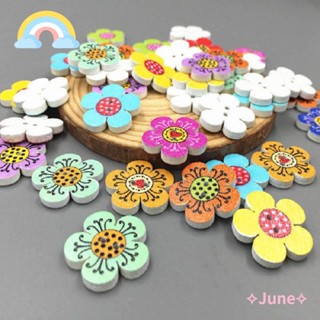 JUNE Set 50 / 100 Nút Gỗ 2 Lỗ Nhiều Màu Dễ Thương
