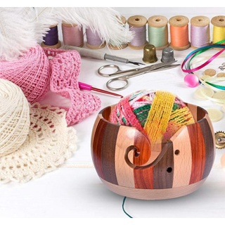 Tô Đựng Sợi Len Chống Trượt Có Lỗ Kèm Giá Đỡ Bằng Gỗ