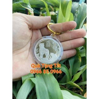 Móc khóa hình đồng xu con hổ cọp Nhâm dần 2022 màu bạc