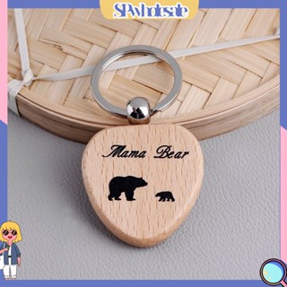 Móc Khóa Mặt Gỗ Hình Trái Tim In Chữ Mama Bear and Cubs Dễ Thương
