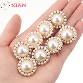 Xiantin Set 10 Nút Hình Bông Hoa Lấp Lánh|Kẹp Tóc Ngọc Trai Giả