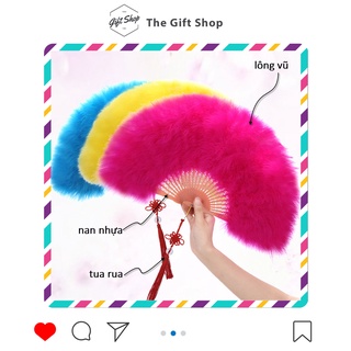 Quạt cổ trang xếp nan nhựa lông vũ chanh xả