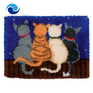 Latch Hook Rug Kits Crocheting Carpet Rug Cats Yarn Pre-Printed Canvas Cushion Mat Crochet Tapestry Sofa Decor