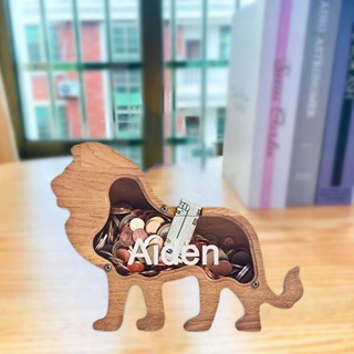 Ống Heo Tiết Kiệm Trong Suốt Bằng Gỗ In Chữ NY-Letter Độc Đáo