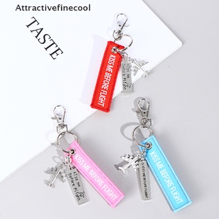 Móc khóa phối hình máy bay bằng kim loại với dòng chữ Kiss Me Before Flight