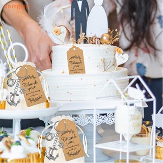 1 Set Móc Khóa Thiết Kế Hình Mỏ Neo Bằng Giấy Kraft Màu Trắng In Chữ Thank You Dùng Làm Quà Tặng Cho Bé / Tiệc Sinh Nhật / Đám Cưới