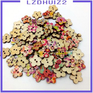 Set 100 Nút Gỗ Hình Bông Hoa Nhiều Màu Sắc Dùng Làm Đồ Thủ Công DIY