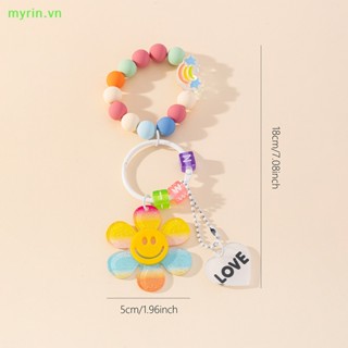 Móc Khóa Xỏ Hạt Nhiều Màu Hình Hoa Hướng Dương Mặt Cười Dễ Thương Phong Cách Hàn Quốc