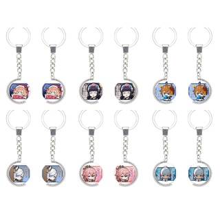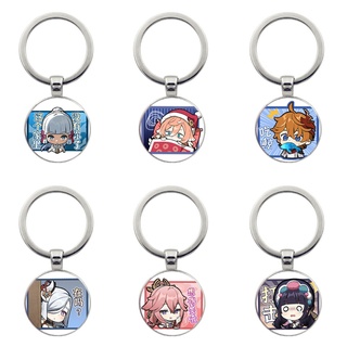 (Viền tròn) Móc khóa tròn kim loại hình GENSHIN IMPACT ver CHỮ NHẬT game anime chibi xinh xắn độc đáo