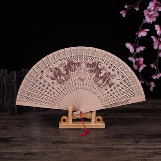 Quạt gỗ thơm 7 mẫu quạt xếp cầm tay phong cách cổ trang Trung Quốc hai con rồng