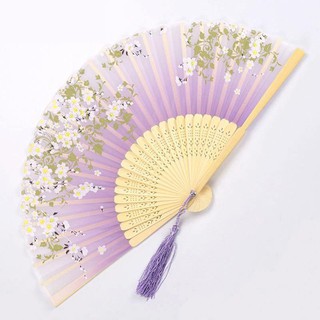 Quạt cổ trang hoa vàng nền tím quạt xếp cầm tay phong cách Trung Quốc