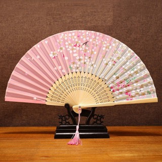 (Up) Quạt Nan Tre Cầm Tay In Hình Hoa Cổ Điển Mùa Hè Cầm Tay Trung Quốc Quà Tặng Trang Trí Xinh Xắn