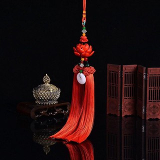 Dây treo tua rua hoa sen ĐỎ NGẮN móc khóa treo sáo tam sinh tam thế cổ trang