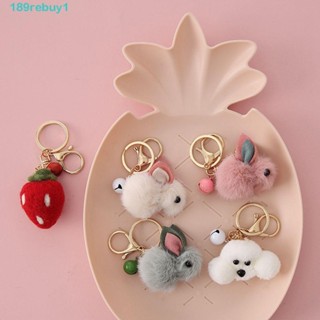Móc Khóa Hình Thỏ / Dâu Tây Bằng Lông Nhung Dễ Thương Xinh Xắn Sáng Tạo REBUY1