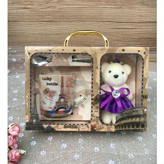 Hộp Quà Tặng Bộ Cốc, Dĩa Thủy Tinh Cao Cấp Đi Kèm Gấu Bông Cute, Trang Trí Trong Hộp Sang Trọng, Thích Hợp Làm Quà Tặng