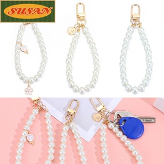 SUSANS Dây Đeo Điện Thoại Đính Ngọc Trai Nhân Tạo Kèm Móc Khóa Xinh Xắn Cho Nữ