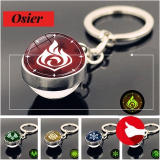 Móc khóa mặt hình quả cầu thủy tinh khắc biểu tượng game Genshin Impact phát sáng trong bóng tối