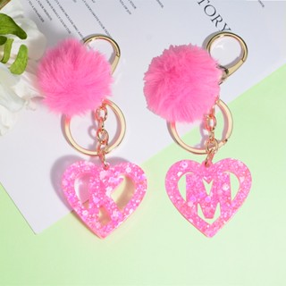 Móc Khóa Mặt Hình 26 Chữ Cái Bằng Nhựa Resin Màu Hồng Gradient Phối Tua Rua Độc Đáo