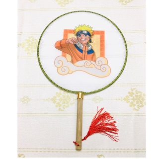 Quạt naruto cán gỗ vải lụa phong cách Nhật bản