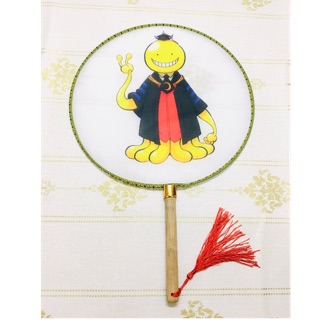 Quạt anime học viện ám sát vải lụa cán gỗ