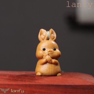 LANFY Móc Chìa Khóa Bằng Gỗ Đàn Hương Hình Thỏ May Mắn Phong Cách Trung Hoa
